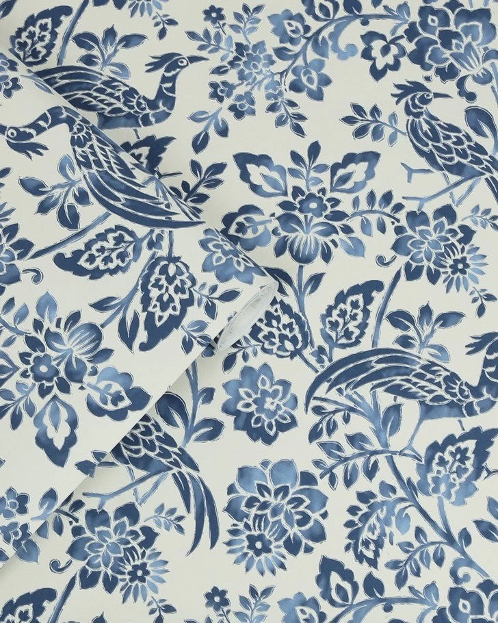 This grand yet simplistic design features majestic birds of paradise in a tonal watercolour style. This dark seaspray blue botanical print is set on a calming white background. Transform any living space with this serene design.