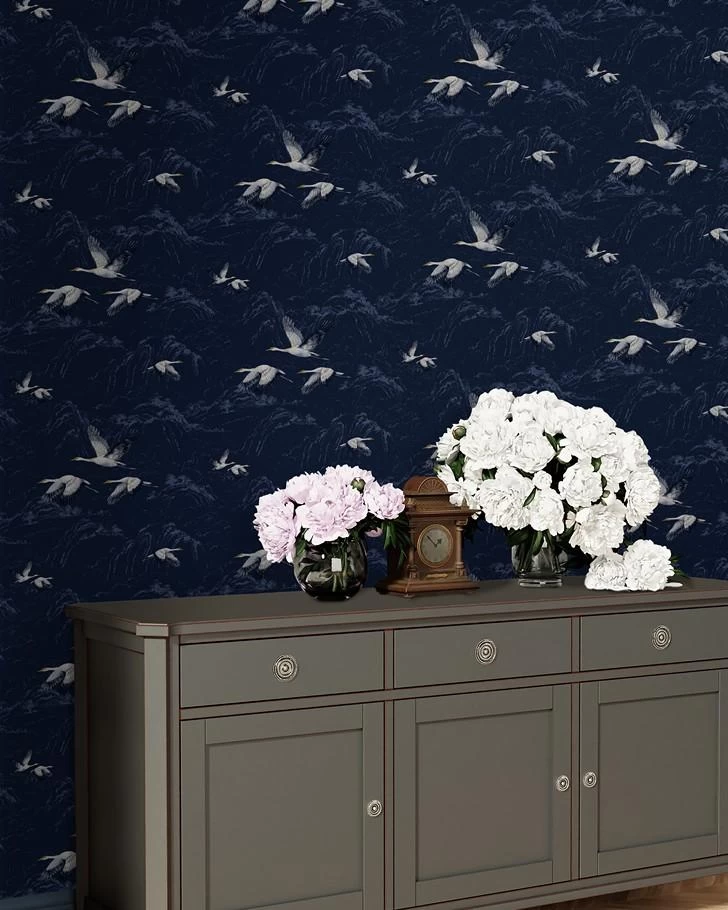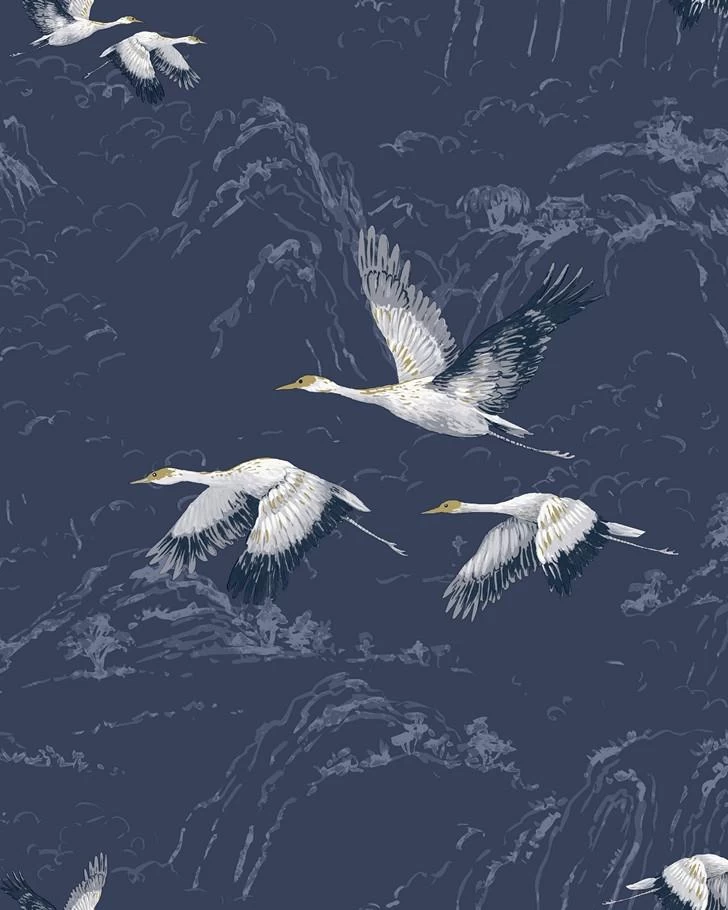 Animalia is a graceful design featuring cranes in flight to add a contemporary yet classic feel to your home.