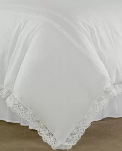With a nod to the past, this white on white cotton ensemble trimmed with crocheted lace adds romance and modern femininity to your bedroom décor. Classic elements look fresh in this streamlined update and cool, crisp cotton adds welcome comfort. With Annabella, you can create an elegant, restful retreat you will enjoy coming home to. 100% cotton comforter includes a Polyester fill. Included shams feature an overlap closure.