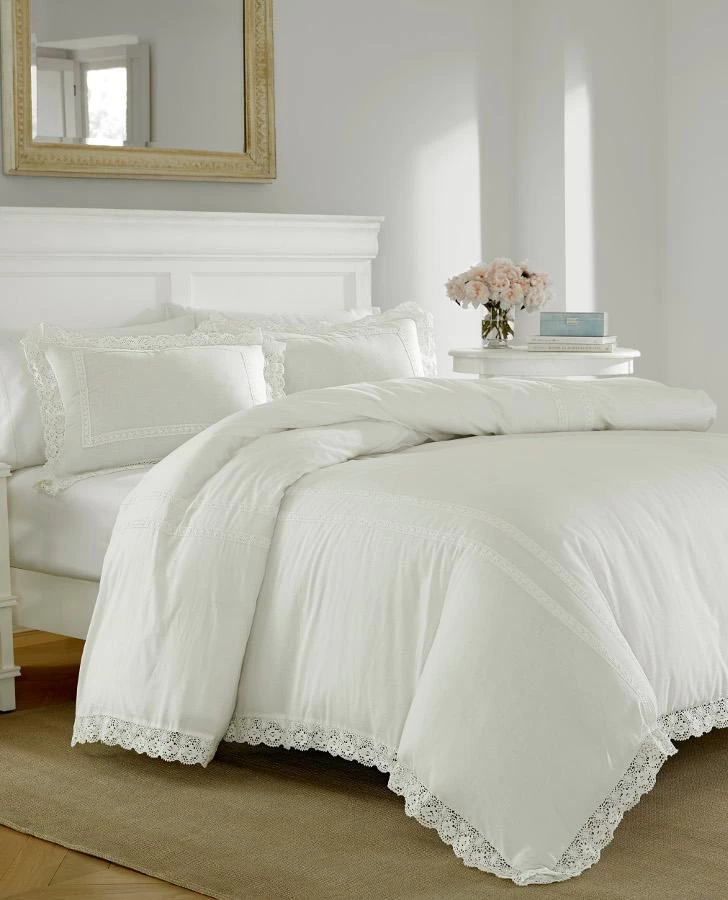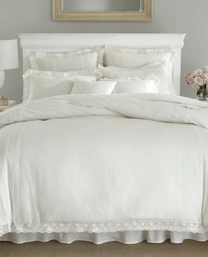 The Annabella Duvet Set is country cottage charm. The solid white colour makes it an easy fit to your current decor, or to add a layer onto your current bedding. The pretty crochet detail along the border completes this crisp look. Duvet set includes one duvet and two shams (twin set includes one sham).
