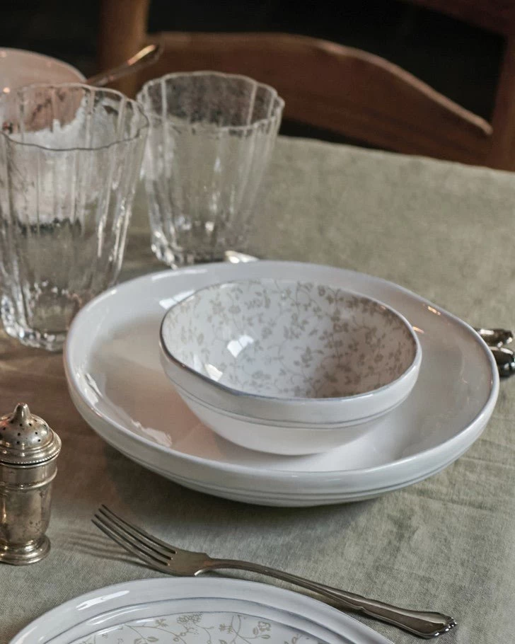 Serve your favorite dishes in these timeless deep plates from the Artisan Collectables series. This beautiful plate set is perfect for both everyday use and special occasions, but also very nice to give as a gift. In fact, the set comes in a beautiful gift box. The natural colors and organic shapes make this set a timeless addition to any interior style. The Artisan Collectables series by Laura Ashley transforms your everyday meals into unforgettable moments. The Collection is characterized by handmade finishes and detailed designs. Combining Laura Ashley’s classic prints with a modern look, this collection has a special, one-of-a-kind look. Each piece is finished in a milky-white glaze that highlights the uniqueness of the clay and ensures that no two pieces are exactly alike.
