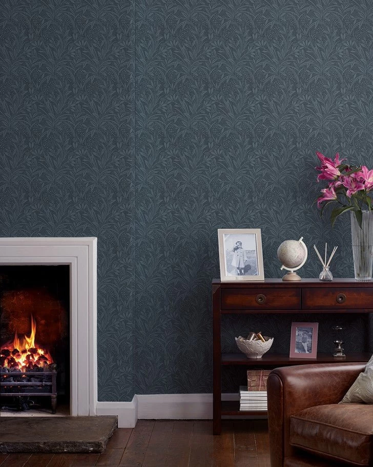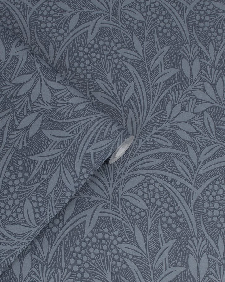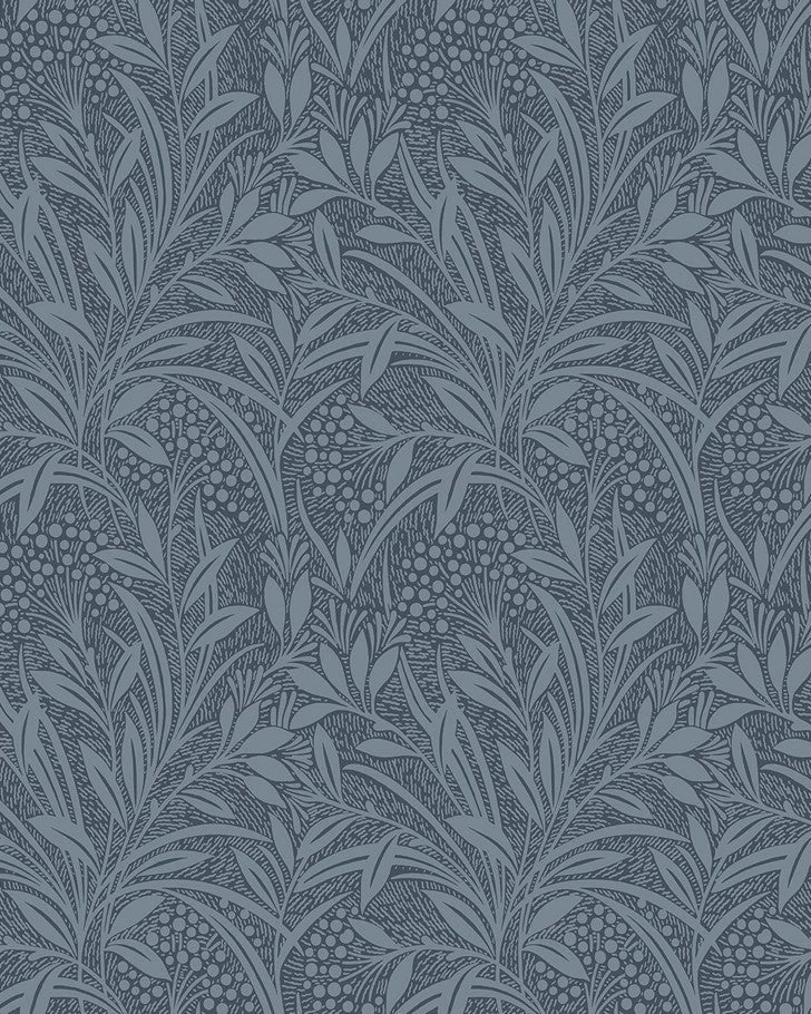 .Bring a touch of nature to your home with this botanical wallpaper. The arts and crafts-inspired design feature a stunning block workprint. This floral design features a blue background that adds a contemporary finish to any room.