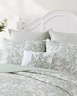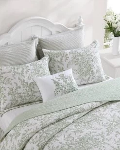 Elevate your bedding style with Laura Ashley Bedford Decorative pillows. Crisp white pillows with blue, pink or green delicate embroidery and cording trim add an elegant touch. Choose from 14″x20″ breakfast style in blue, light pink or sage green. Each pillow is sold separately. Certified Oeko-Tex standard 100, this product is tested for harmful substances. This pillow coordinates with the Laura Ashley Bedford matching quilt, and with many other Laura Ashley bedding products.