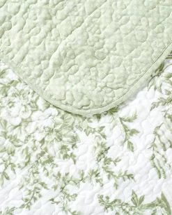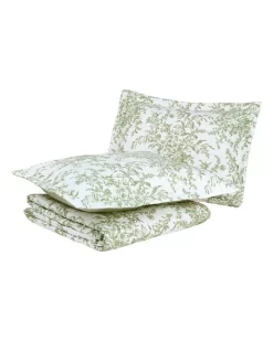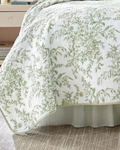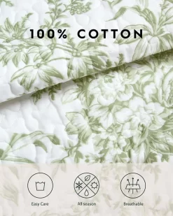The neutral sage color of the Bedford Floral toile print makes this a versatile quilt set for any bedroom. Paired with a mini-print geometric coordinate in sage and white, this set will look stunning in any bedroom. The pre-washed cotton quilt will become softer with every wash. Filled with a blend of cotton/polyester, this quilt is lightweight, yet can be layered for year-round use. Set includes one quilt and two shams for full/queen and king size, one sham for twin size. Machine washable for easy care.