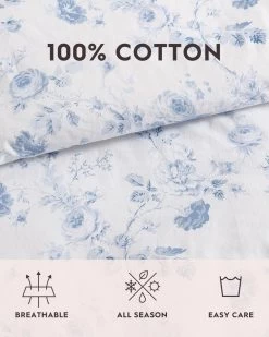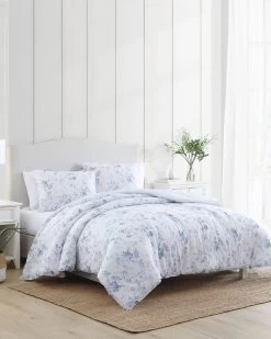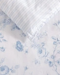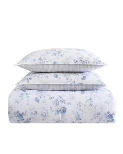 The Belinda Comforter Set’s beautiful cottage rose print blooms in traditional blue on an airy white ground. The comforter and shams reverse to a classic shirting stripe. Twin and Twin XL 2 pc. Sets include a comforter and 1 standard sham. Full/queen 3 pc. sets include 1 full/queen comforter and 2 standard shams. King 3 pc. sets include 1 king comforter and 2 king shams. OEKO-TEX Standard 100 Certified: This product has been tested to be safe and free from harmful chemicals.