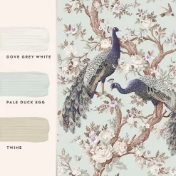 Choose glamour and sophistication with the stunning Belvedere wallpaper. Classically ornate, this print features elegant peacocks and timeless florals. In the duck egg colorway, it is serene and stately.