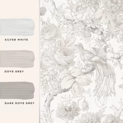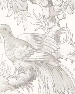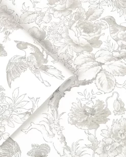 Taking inspiration from signature Laura Ashley archive prints, Birtle wallpaper combines simplicity with natural glamor. This romantic design features charming birds perched upon exotic tree branches alongside blooming roses and poppies. In the dove grey colorway, this wallpaper is calming and neutral, perfect for matching any decor.