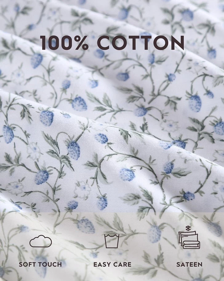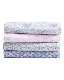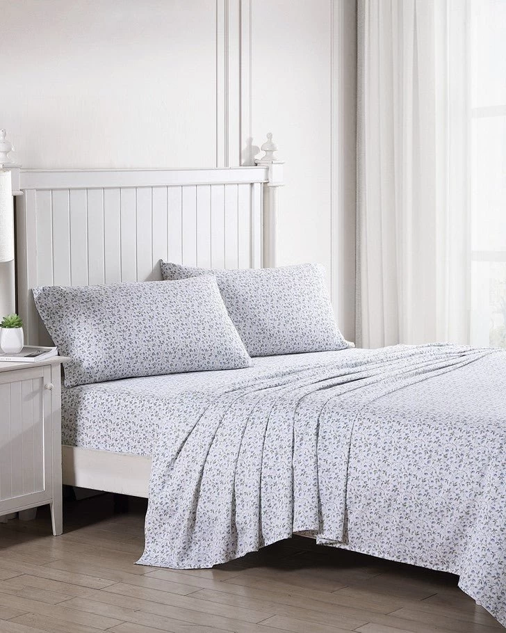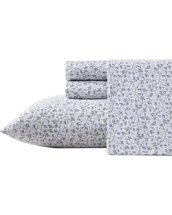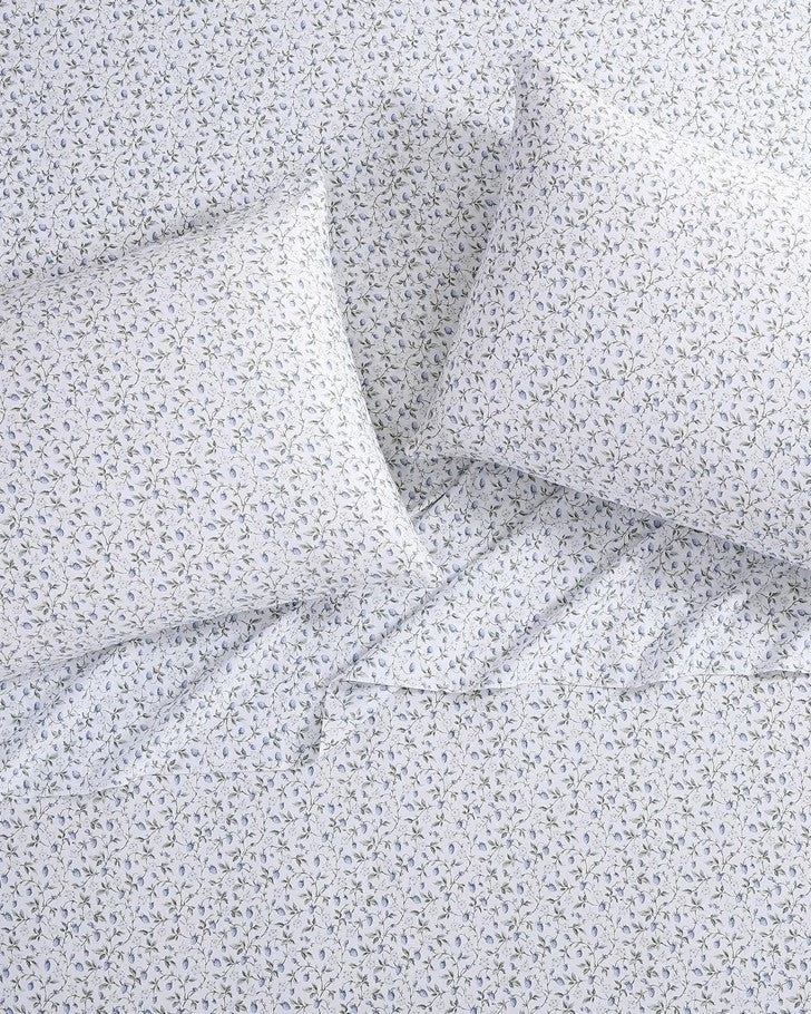 Add vintage charm to your bedroom with Laura Ashley Cotton Sateen Sheet Sets. Mix and match her signature florals and timeless prints with solid or printed bedding. Made of long staple 300 thread count cotton in a lustrous sateen weave for silky softness. Sheets soften with each wash. Queen set includes one fitted sheet, one flat sheet two standard pillowcases. King set includes one fitted sheet, one flat sheet and two king pillowcases. Fitted sheet features a 15″ deep pocket that fits up to an 18″ mattress and is fully elasticized to keep in place. Machine washable for easy care. Oeko-Tex® Standard 100 tested and certified to contain no harmful substances. Better for you and for the environment.