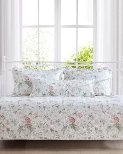 Laura Ashley’s iconic Breezy Floral quilt, now available in a daybed set. Featuring a country cottage floral in soft pinks and greens, this convenient set is perfect for your guest room or kids room – daybed, two shams and decorative pillow cover included. Just add sheets! (your favorite Laura Ashley sheets are sold separately) pillow insert not included. Daybed face, reverse, shams and pillow cover made from 100% cotton. quilting fill is a blend of 80% cotton 20% polyester for warmth without the added weight.