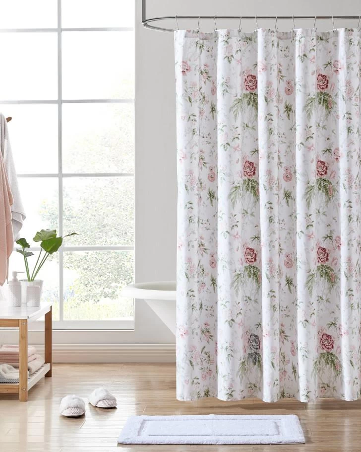 A vintage cottage design gets a modern makeover with an updated palette of pale pinks and greens in the Breezy Floral Shower Curtain. This Laura Ashley archive floral is fresh and pretty on soft 100% cotton twill. The shower curtain is machine washable for easy care and measures 72″L x 72″W. Liner and hooks are not included.