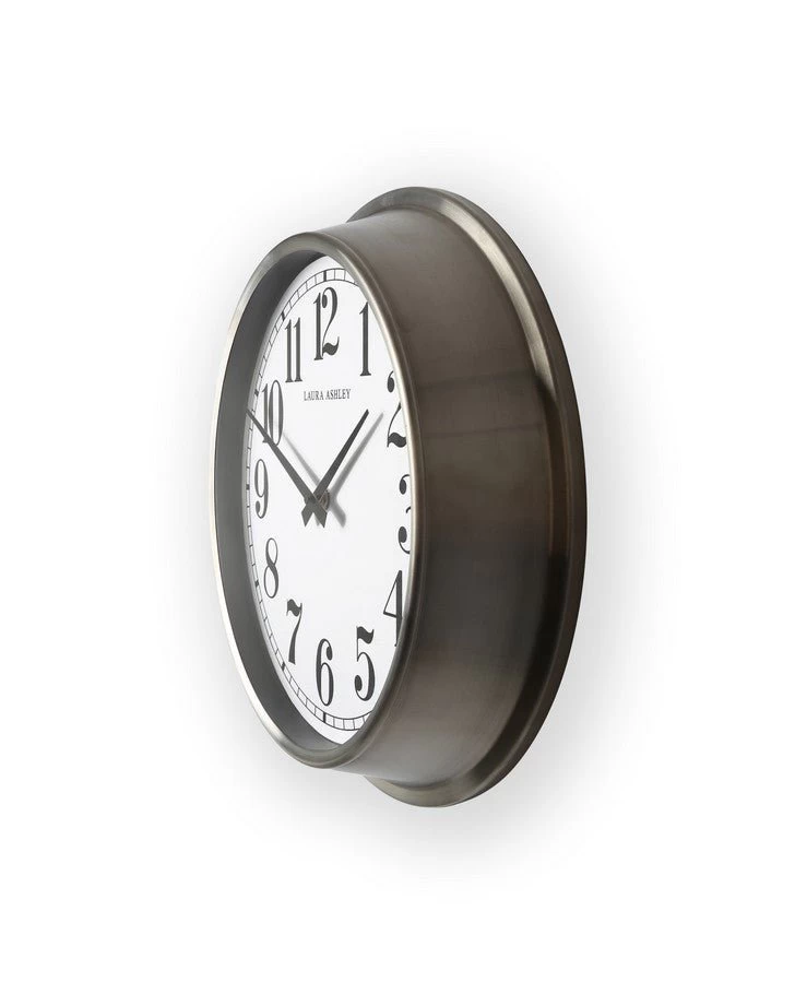 The Gibson clock is the ultimate statement piece for your home. The brushed stainless steel finish looks stunning with the extra deep case of this design. Requires 1 AA battery. Batteries not included.