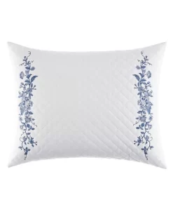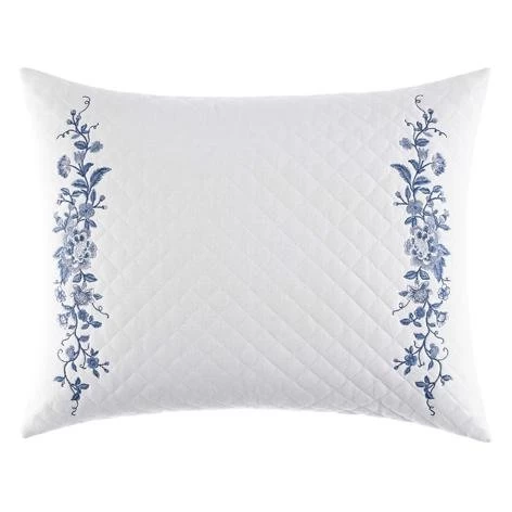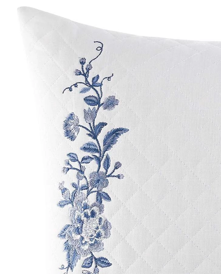Bring a touch of timeless elegance to your bed with the lovely Charlotte Breakfast Throw Pillow. Inspired by beautiful blue and white porcelain, this exquisite throw pillow features floral embroidery on a white quilted ground.