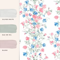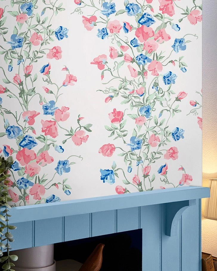 Charlotte wallpaper is the perfect print for a beautiful vintage feel. Colors of rosy pinks meet blossoming blues in this heritage-inspired paper. The wallpaper features intertwined sweet peas cast amongst scrolling tendrils, creating a soft and delicate feel.