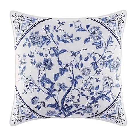 Bring a touch of timeless elegance to your bed with the lovely Charlotte Square Throw Pillow. Inspired by beautiful blue and white porcelain, this exquisite throw pillow features a unique tree of life print.