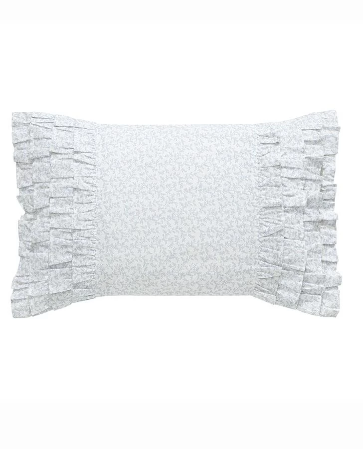 The Chloe Cottage Throw Pillow features a beautiful vine design with ruffled sides. Pillow measures 14″ x 20″. Cotton pillow features a polyester fill and is machine washable. Features an easy overlap closure.