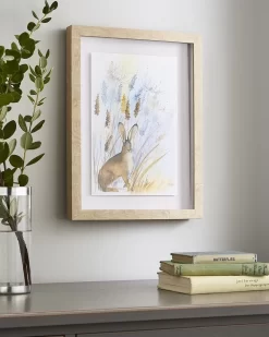 This picturesque country hare wall art will bring rustic charm into your home. Enhanced with a hand painted watercolor effect, this canvas in a wooden frame embraces French Country design. Small pops of color add a soothing yet charming feel to any wall.
