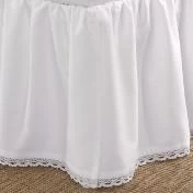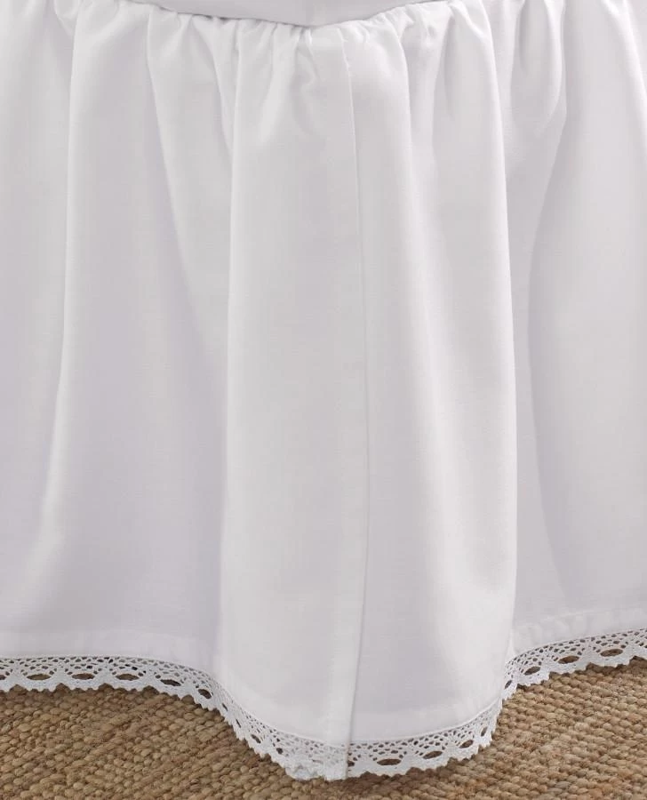 Finish your bedroom with a look of charm and elegance with the Laura Ashley Crochet Ruffle bedskirt. This accessory is decorated with a ruffled edge using soft cotton sateen and is finished with an intricate lace trim. Bedskirt features a 14.5″ cotton drop. Polypropelene platform features a 100% cotton drop.