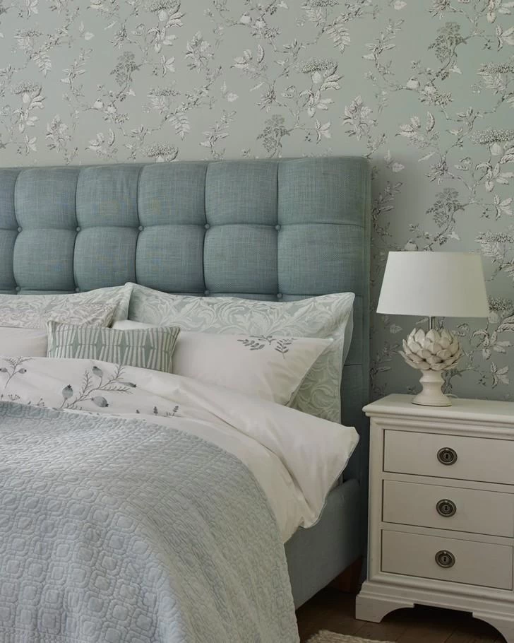 A fresh and modern twist to Laura Ashley’s heritage Elderwood design. This white design is brought to life on a soft duck egg background. A mixture of floral and botanical elements makes this the perfect wallpaper to bring some nature to your walls.