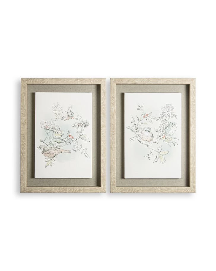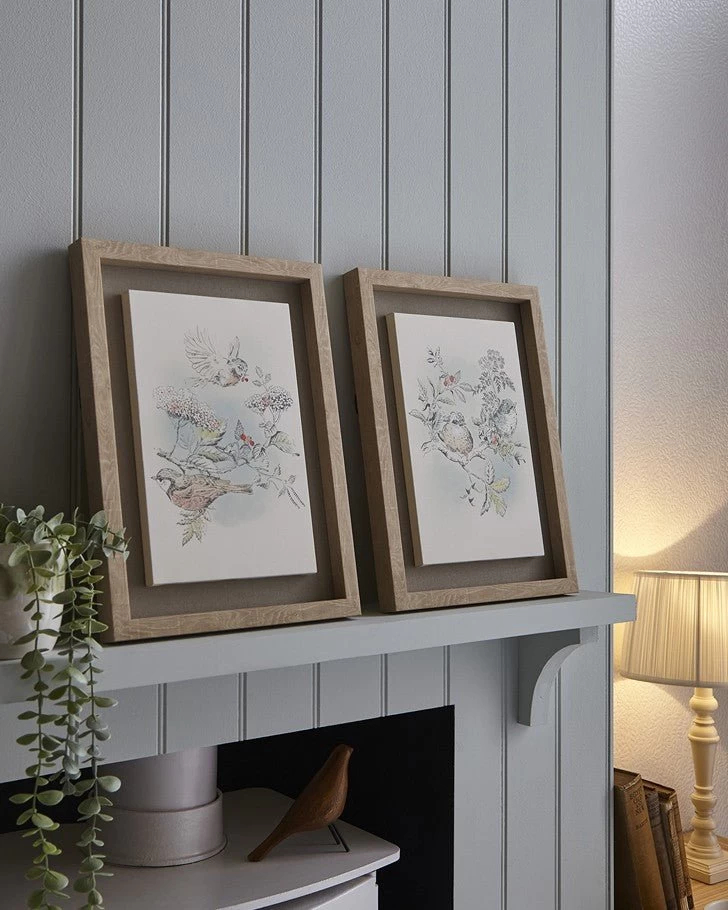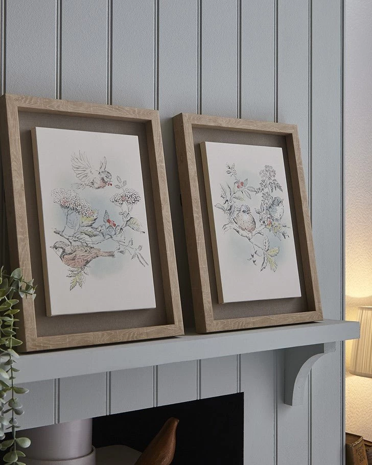 This lovely set of 2 floating framed canvases mirrors the stunning detail of the Elderwood wallpaper. This design features hand drawn blossoms, berries, and birds. Pair with the Laura Ashley Little Vines Paintable wallpaper to create your own unique touch.