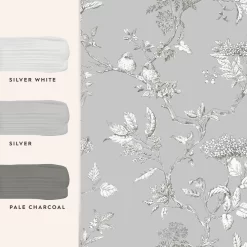 A fresh and modern twist to Laura Ashley’s heritage Elderwood design. This white design is brought to life on a steel grey background. A mixture of floral and botanical elements makes this the perfect wallpaper to bring some nature to your walls.