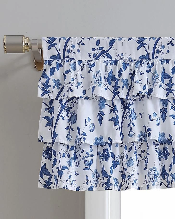 A timeless classic, the Laura Ashley Elise pattern is a striking royal blue and white inspired by elegant porcelain designs. Made of 100% cotton, the valance is soft and light weight. The valance has 3 tiers of ruffles and a 3″ rod pocket.