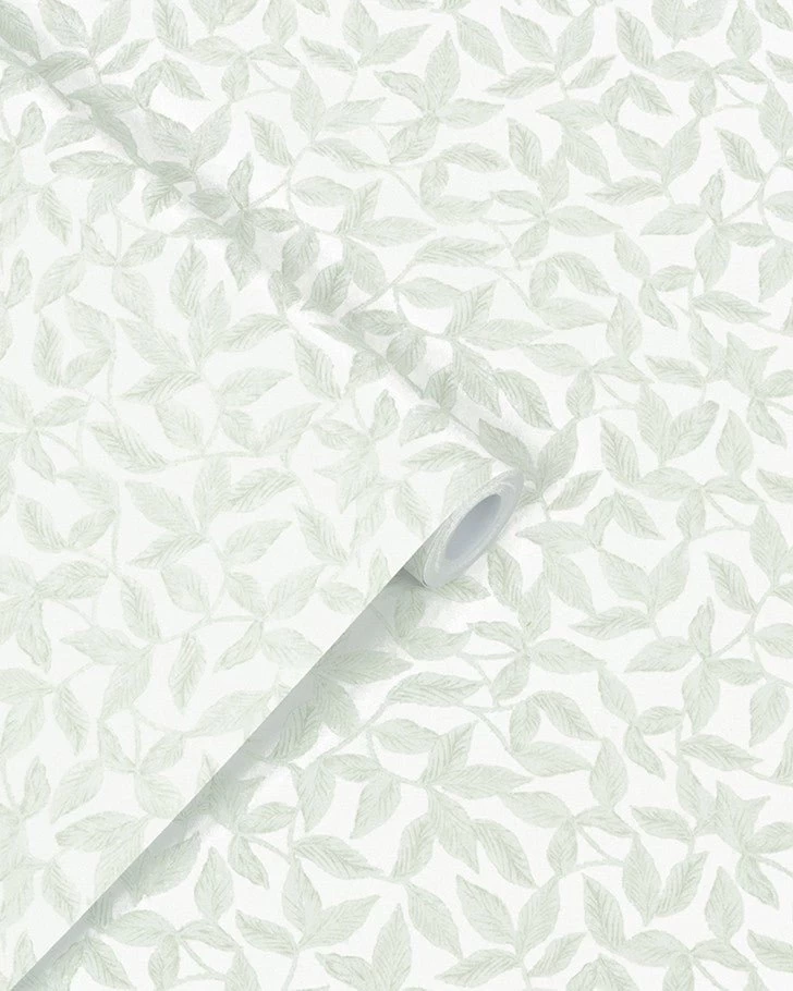 Bring a delightful country charm to any room with the Erwood wallpaper. In the Pale Eau De Nil colorway, this wallpaper is neutral but understated. Featuring intertwined leaves flowing in different directions, this print brings the outside into your decor.