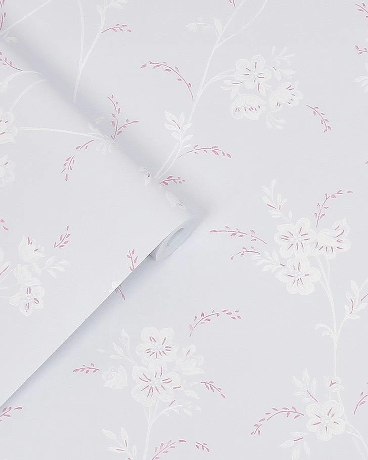 This romantic large-scale floral design was originally a vintage hand-painted wallpaper sample found in the Laura Ashley archive. Featuring stylised floral stems with blossom-like flowers, Eva Floral will add a feminine touch to your home. The sugared grey background is fresh and neutral while the pops of pink flowers create an elegant talking point.