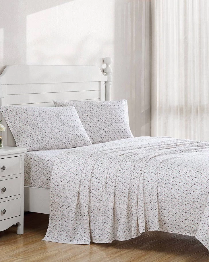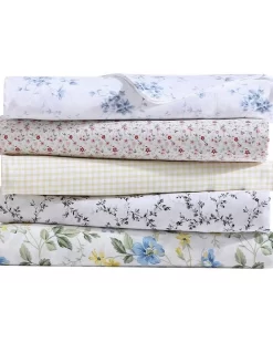 Add vintage charm to your bedroom with the Laura Ashley cotton sateen sheet sets. Mix and match her signature florals and timeless prints with solid or printed bedding. Made of long-staple 300 thread count cotton in a lustrous sateen weave for silky softness. Sheets soften with each wash.