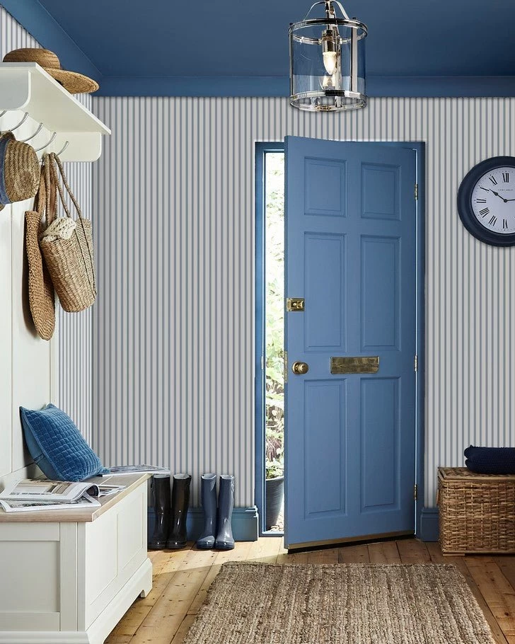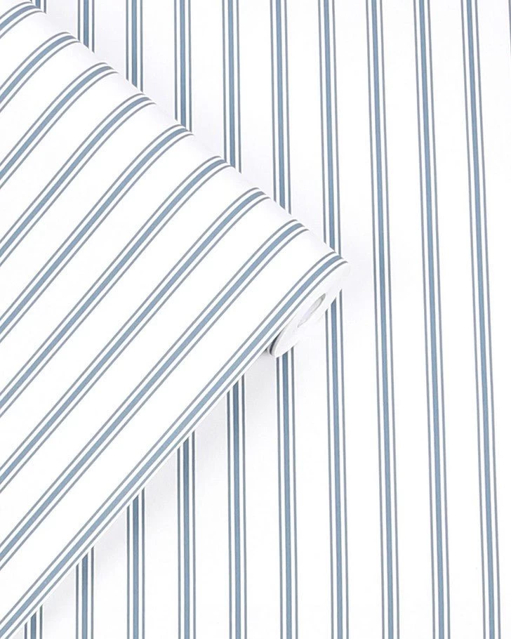 A clean and classic textural stripe inspired by country farmhouse style, Farnworth Stripe provides effortless charm. This stunning pattern’s charming classic country look exudes calmness and happiness. In the smoke blue colorway, this paper is the perfect backdrop for your walls.