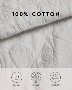 The Felicity Soft Grey quilt set is a great item to add to your current bedding or to use on its own. Quilt uses an ironwork quilt stitch design. Shams feature two ties for pillow insert that are 6″ apart and 10″ long. Enjoy the comfort of 100% cotton materials and sleep the night away with a new quilt. Set includes quilt and two shams (twin set includes one sham).