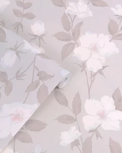 Bring a romantic touch to any space with the Fleurir wallpaper. Bold and beautiful, this fresh design is inspired by antique wallpaper documents discovered in the Laura Ashley archive. The light pink background with soft white flowers has a timeless feel.