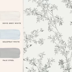 This classic floral design in a contemporary style adds a lovely touch of nature to any home. Creating an inviting space has never been easier thanks to the Forsythia blossom wallpaper! The off-white background showcases delicate steel grey branches and blossoms that will surely become a timeless design.