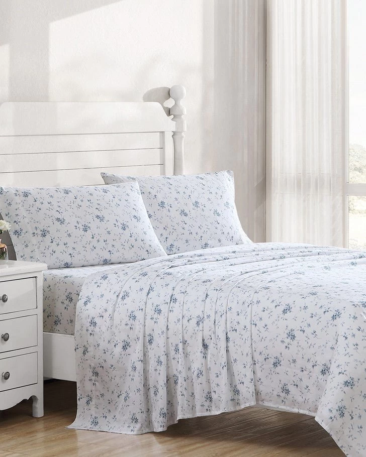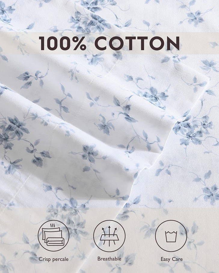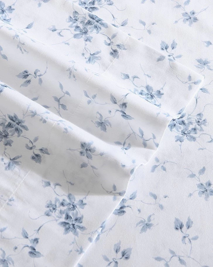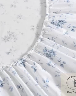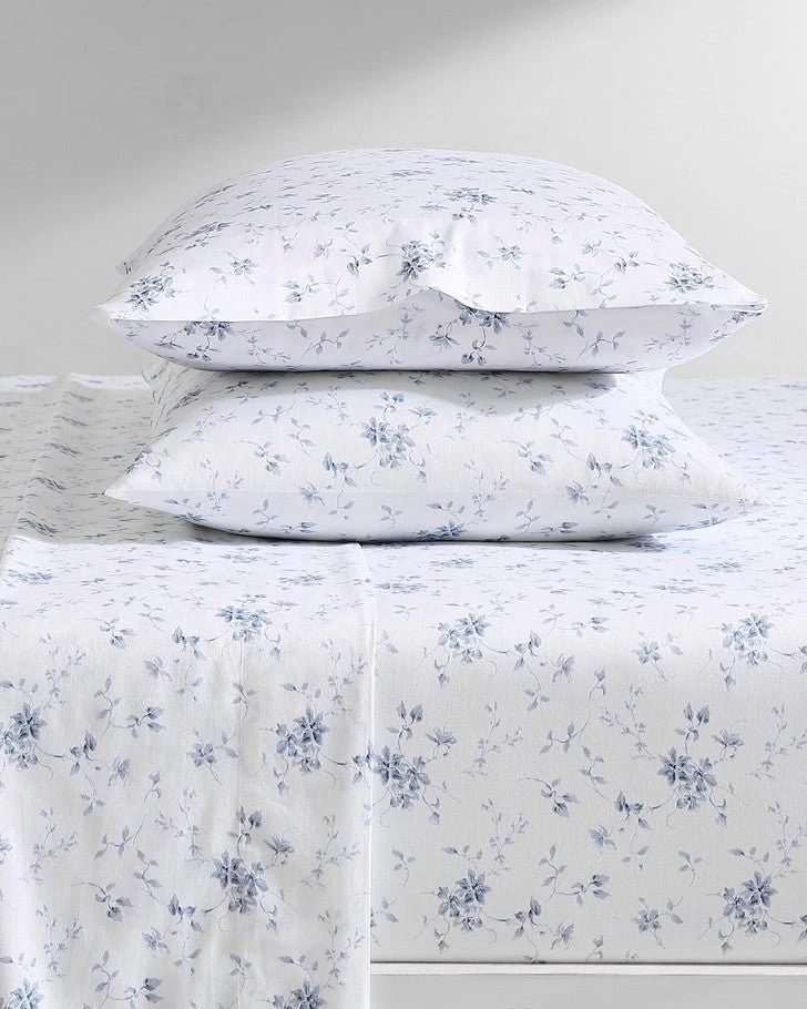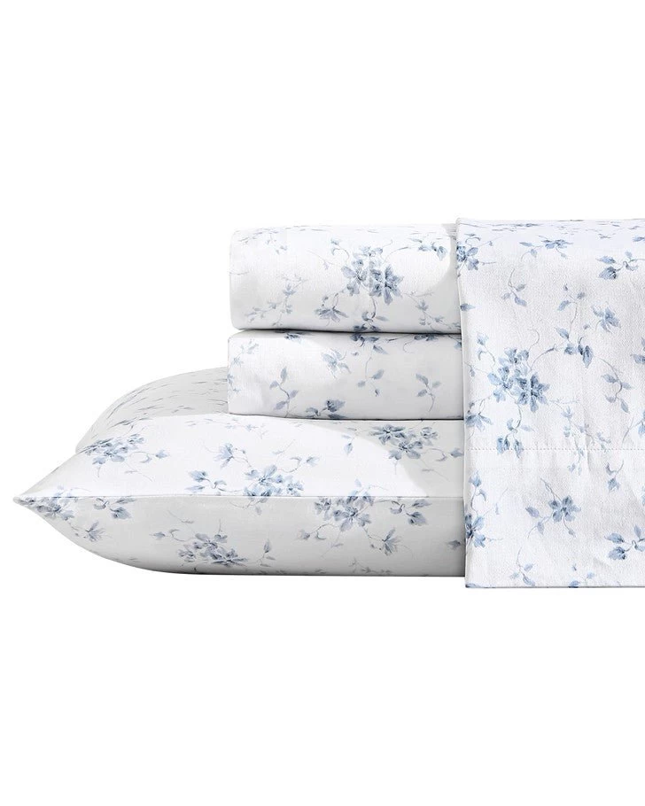 Add vintage charm to your bedroom with the Laura Ashley cotton sateen sheet sets. Mix and match her signature florals and timeless prints with solid or printed bedding. Made of long staple 300 thread count cotton in a lustrous sateen weave for silky softness. Sheets soften with each wash.