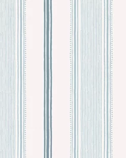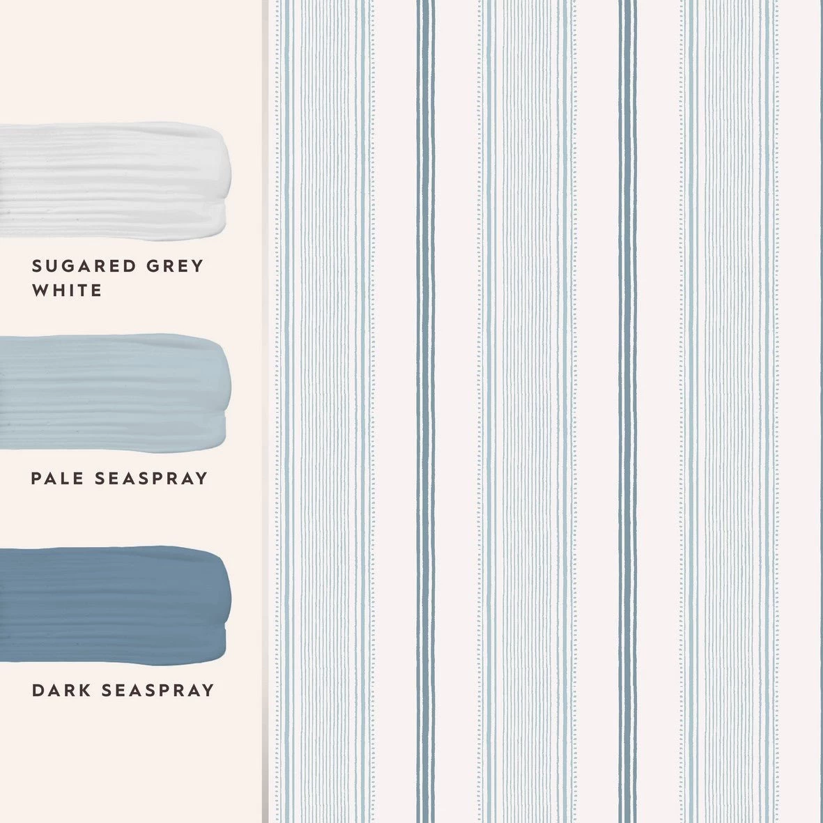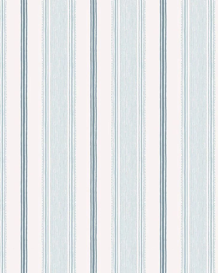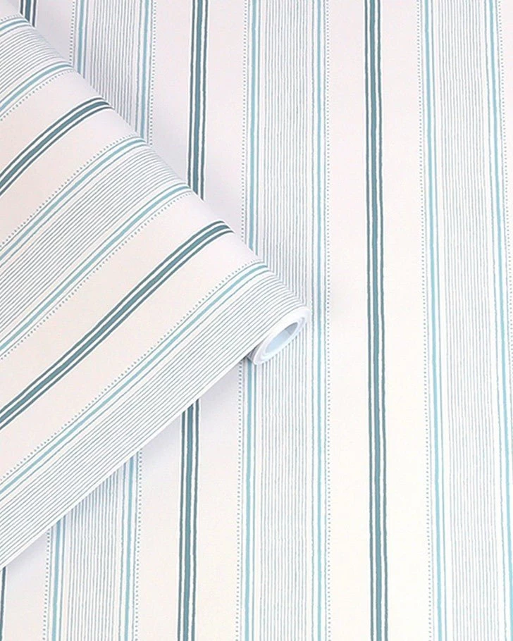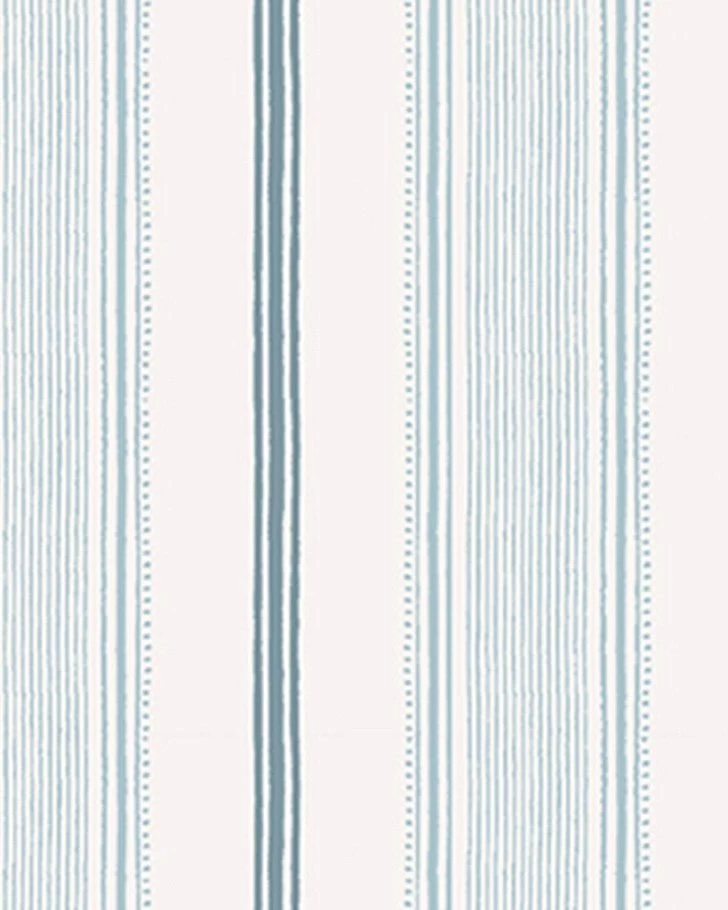 Clean and contemporary, Heacham Stripe offers a minimal and timeless look to any interior. Varied sizes of blue stripes are set against a white background, giving the illusion of texture. This seaspray colorway is beachy and adds a sense of calmness to a room.