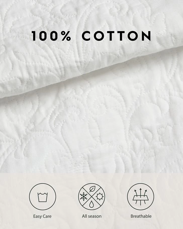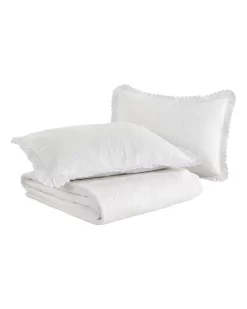 Achieve country cottage charm with the Heirloom Crochet Quilt Set. The solid white colour makes it an easy fit to your current decor, or to add a layer onto your current bedding. The pretty crochet detailing along the border adds charm and completes the look. Set includes one quilt and two shams (twin set includes one sham).