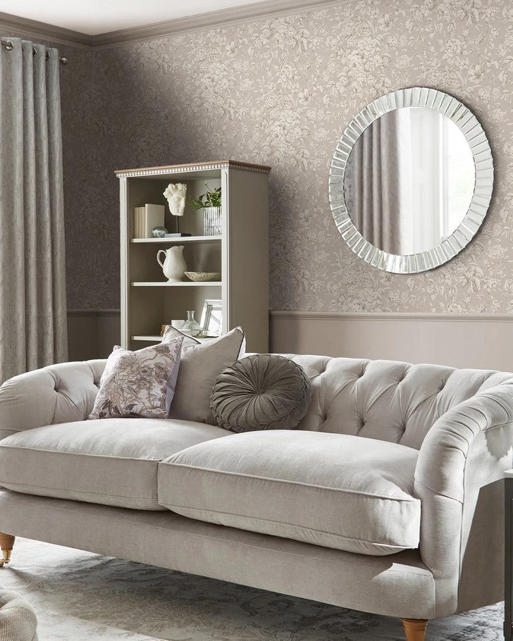 This romantic floral print was inspired by a piece from the Laura Ashley archive from the early 2000s. Heledd Blooms is a tonal design featuring an abundance of roses, lilies and hydrangeas woven together, trailing the design. The dove grey colors along with the floral design is sure to bring a simple elegance to any room.