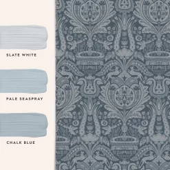Create extra drama and luxury in your home with the Heraldic Damask design. In striking seaspray tones, this beautiful damask print is detailed and charming. This wallpaper is the perfect choice for creating a regal finish for your interior.