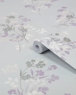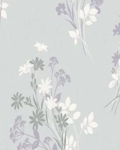 A contemporary floral print, the Igerna wallpaper showcases pretty botanical bunches. Sprays of stemmed cow parsley, hedgerow wildflowers, clover and marigold in a striking silhouette create a subtle and charming effect. The pale duck egg blue color palette is the perfect backdrop for many interiors.