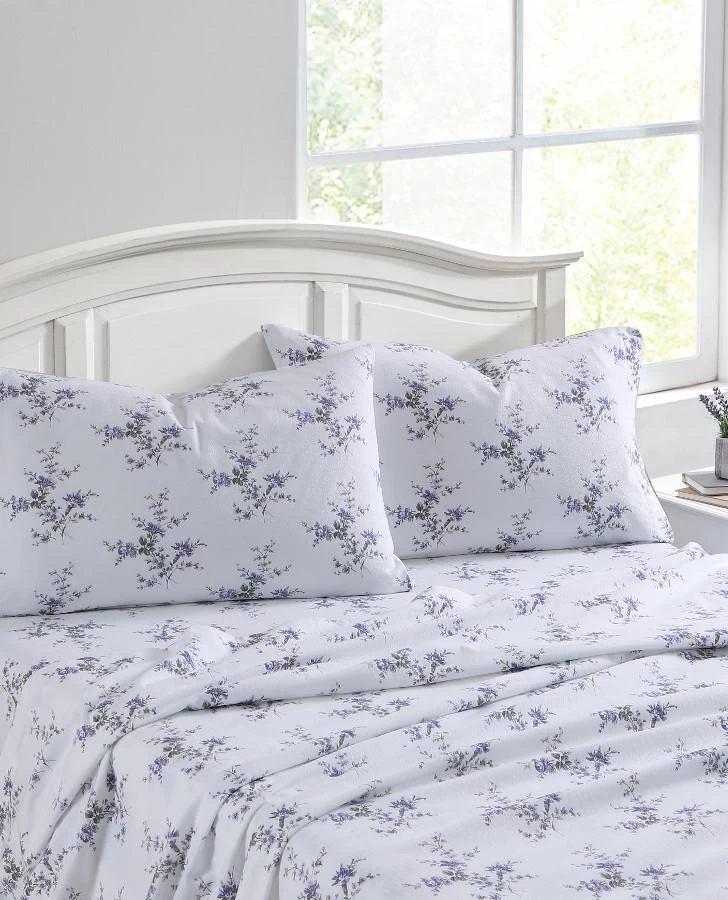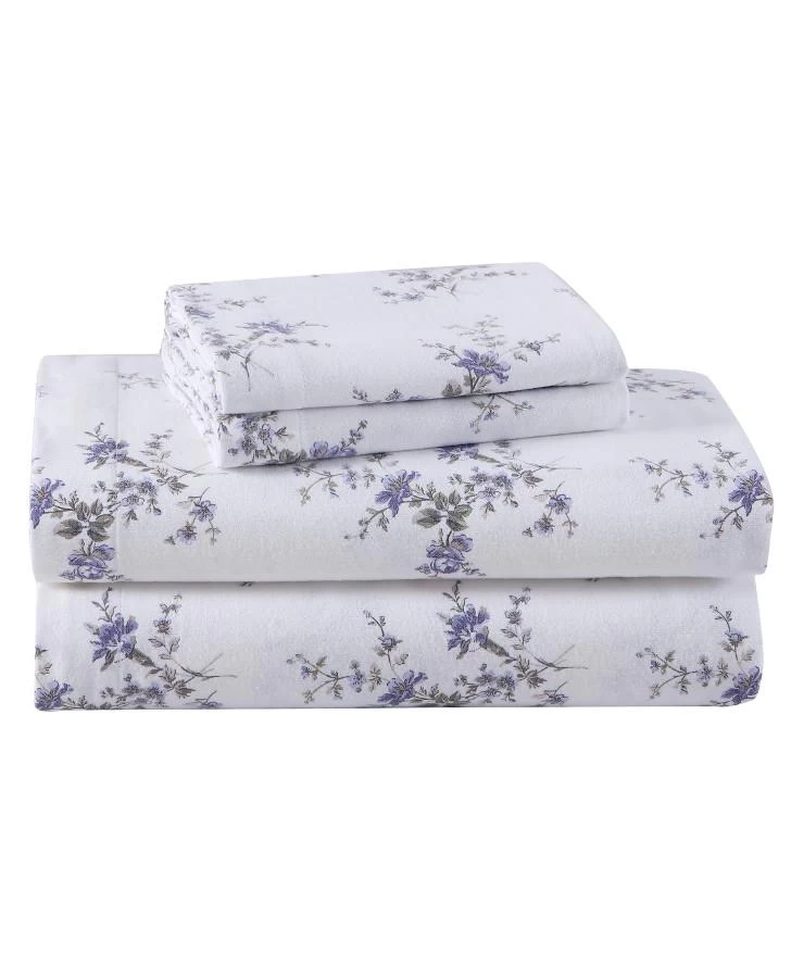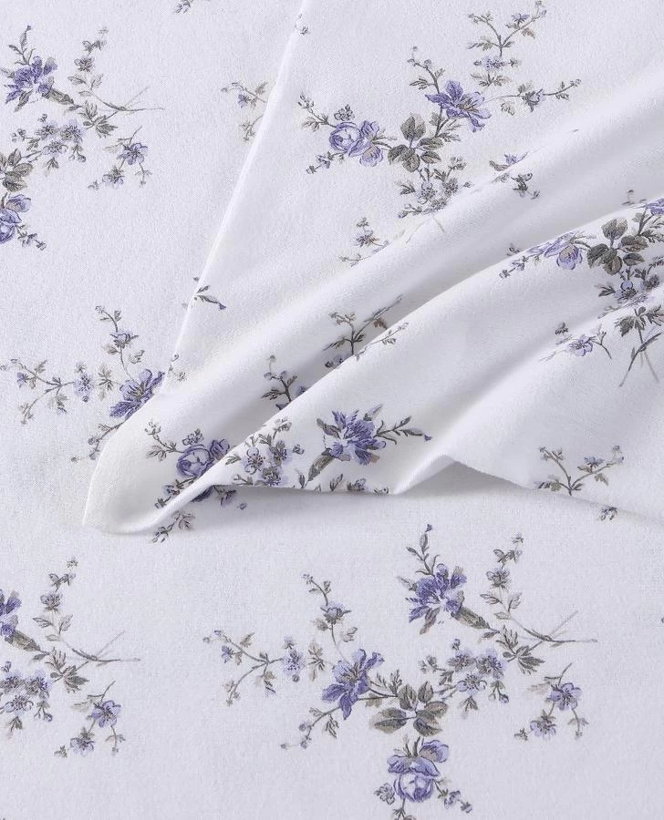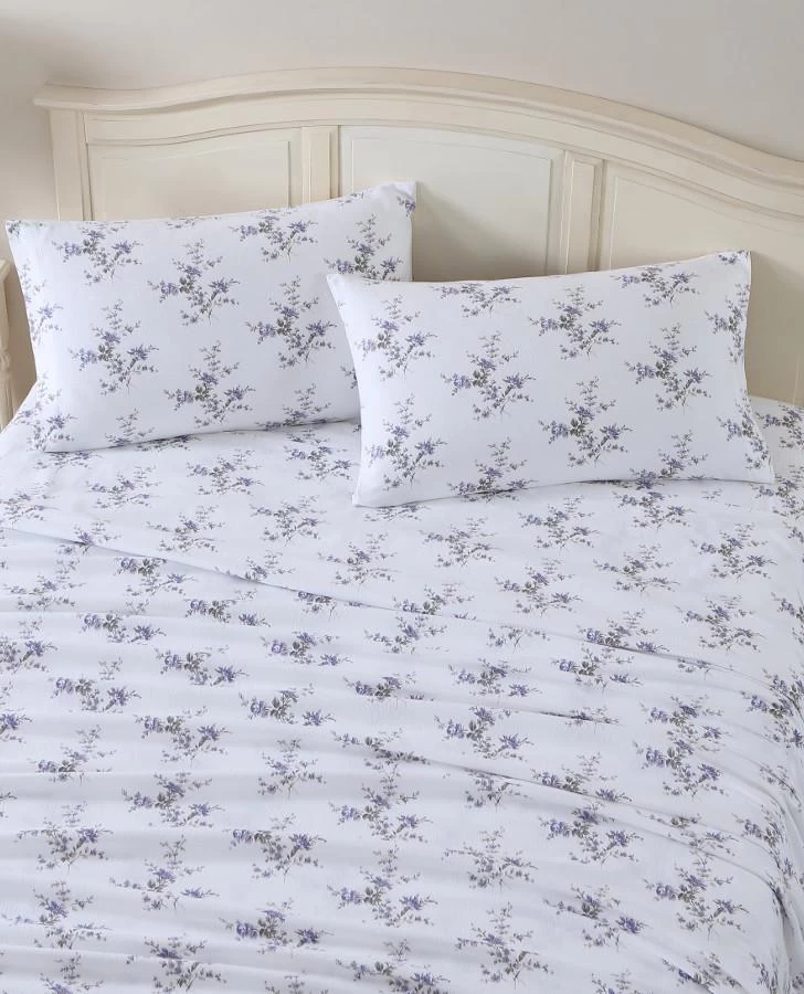 Bring a beautiful new look to your bed with a Laura Ashley Flannel Cotton Sheet Set. Choose from several gorgeous and elegant designs and solids that are sure to coordinate with your bedding ensemble. With their quality construction, these sheets offer the ultimate comfort, warmth and style. The approved process for finishing our flannel sheets is an 8-leveled brushing standard. The cotton yarns are woven, then brushed 3 times on the face and once on the back, the fabric is then colored and/or printed and finished with 3 additional brush treatments on the face and 1 on the back. This process ensures a very comfortable, soft and cozy finish that will ease you into a restful night’s sleep.