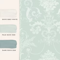 A Laura Ashley classic, Josette is an ornate and elegant damask. Featuring glamorous chandeliers and romantic rose bouquets, this wallpaper is undeniably elegant. Our French-inspired damask design adds a contemporary edge in duck egg and white tones.