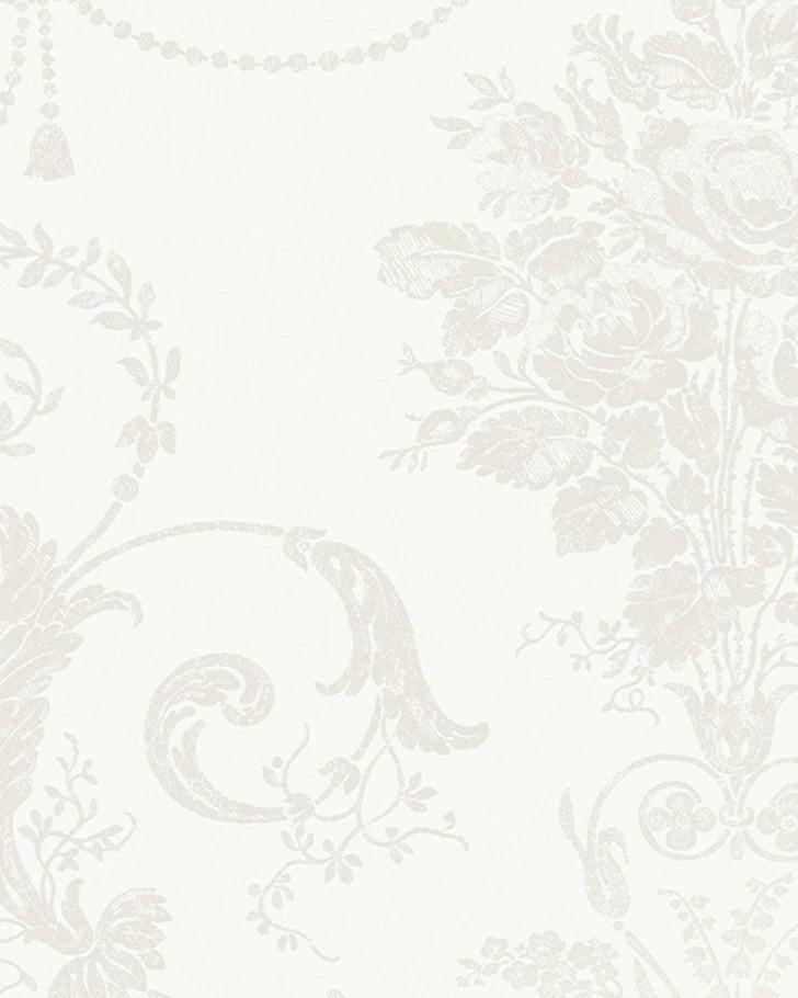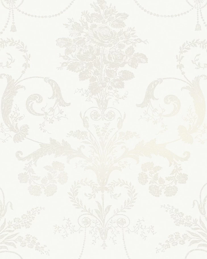 A Laura Ashley classic, Josette is an ornate and elegant damask. Featuring glamorous chandeliers and romantic rose bouquets, this wallpaper is undeniably elegant. Our French-inspired damask design adds a contemporary edge in neutral and white tones.
