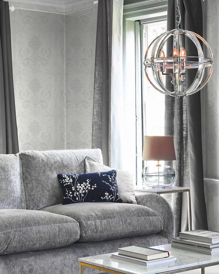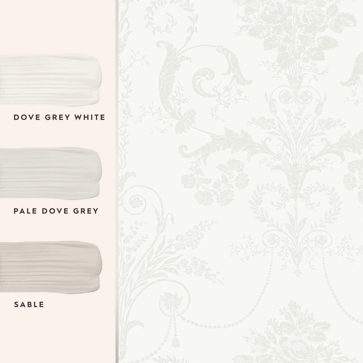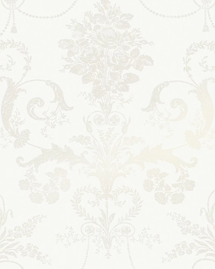 A Laura Ashley classic, Josette is an ornate and elegant damask. Featuring glamorous chandeliers and romantic rose bouquets, this wallpaper is undeniably elegant. Our French-inspired damask design adds a contemporary edge in neutral and white tones.