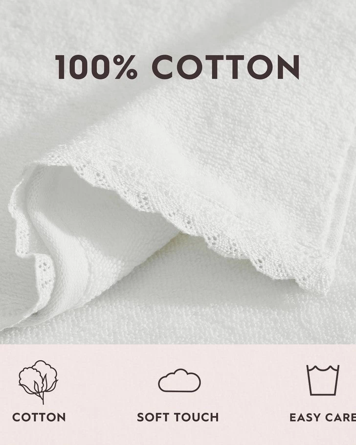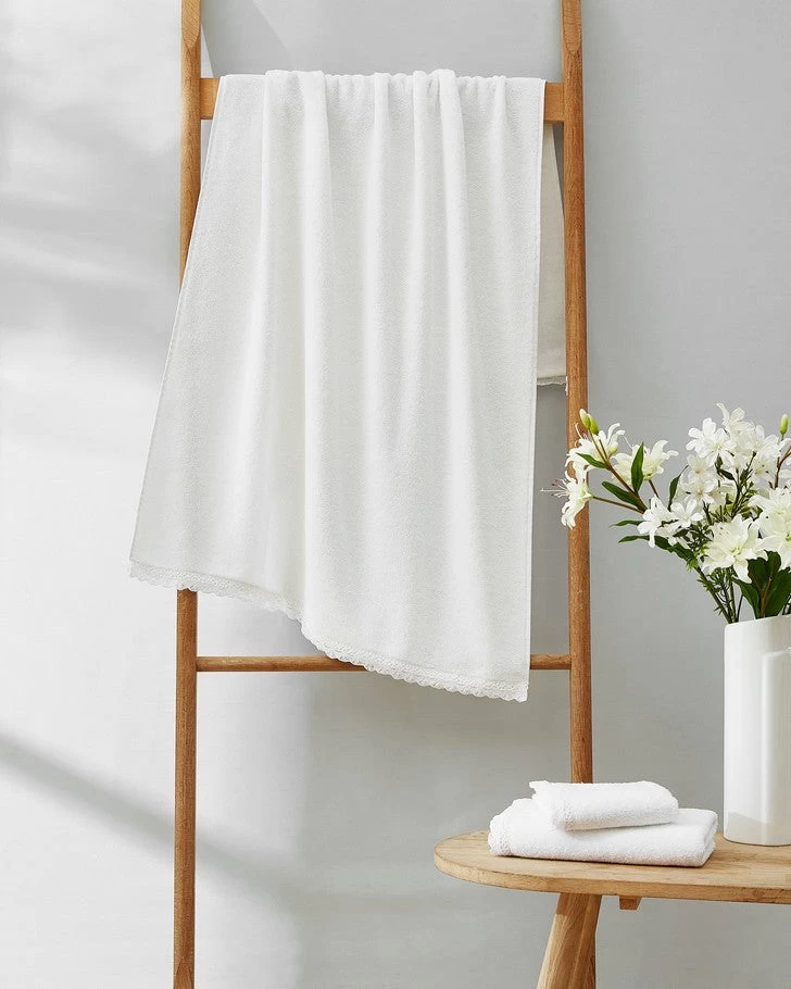 Juliette Lace Hem White 3 Piece Towel Set