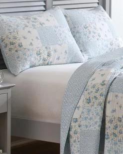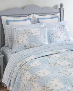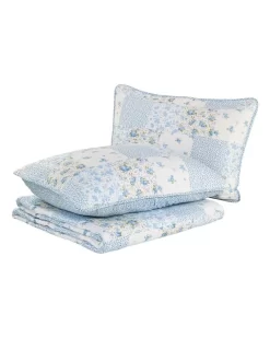 The pre-washed Kenna quilt set brings together a medley of small scale floral prints in a classic block pieced patchwork design. The fresh palet of soft blues creates a charming cottage look that works anywhere. Set includes one quilt and two shams (twin size includes one sham).