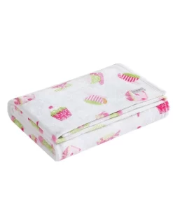 Introduce your little one to the Laura Ashley kids plush throw blankets, the ultimate cozy companions to cuddle up with on the couch. These irresistibly soft and fun throw blankets are designed to bring warmth, comfort, and a touch of whimsy to your child’s downtime. Available in 4 designs, choose the one that best fits their style. This throw features a white ground with assorted pink cupcakes. The materials are 100% soft plush microfiber. CPSIA tested, ensuring it meets the highest safety standards for kids’ products.
