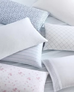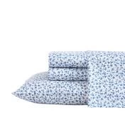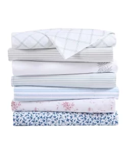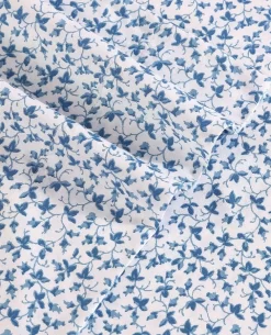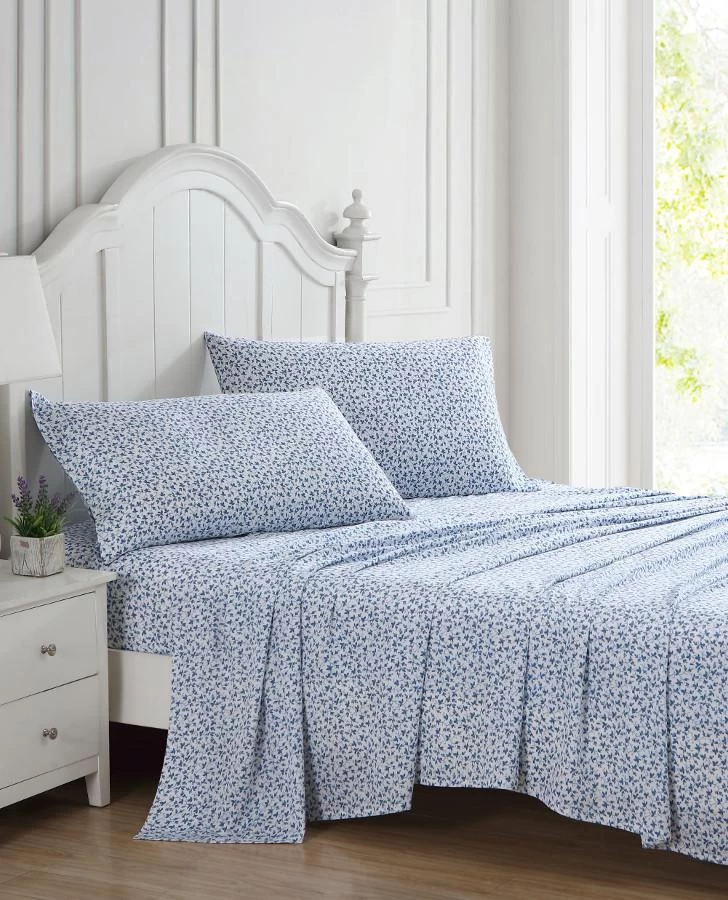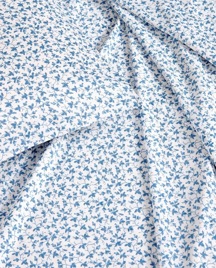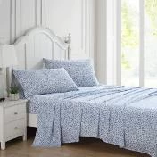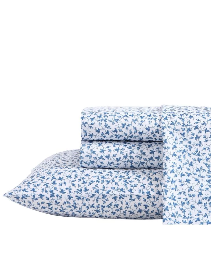 The Laura Ashley Lavange Vine Sheet Set has a bold yet graceful leaf and vine pattern in deep indigo on white. The sheets are made of long staple cotton with a 300-thread count, and a lustrous sateen weave that gives you that super soft and silky feel. Sheets soften with each wash.
