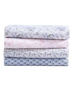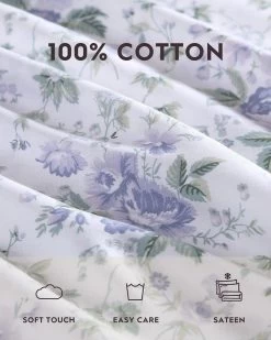 Add vintage charm to your bedroom with Laura Ashley Cotton Sateen Sheet Sets. Mix and match her signature florals and timeless prints with solid or printed bedding. Made of long staple 300 thread count cotton in a lustrous sateen weave for silky softness. Sheets soften with each wash. Queen set includes one fitted sheet, one flat sheet two standard pillowcases. King set includes one fitted sheet, one flat sheet and two king pillowcases. Fitted sheet features a 15″ deep pocket that fits up to an 18″ mattress, and is fully elasticized to keep in place. Machine washable for easy care. Oeko-Tex® Standard 100 tested and certified to contain no harmful substances. Better for you and for the environment.