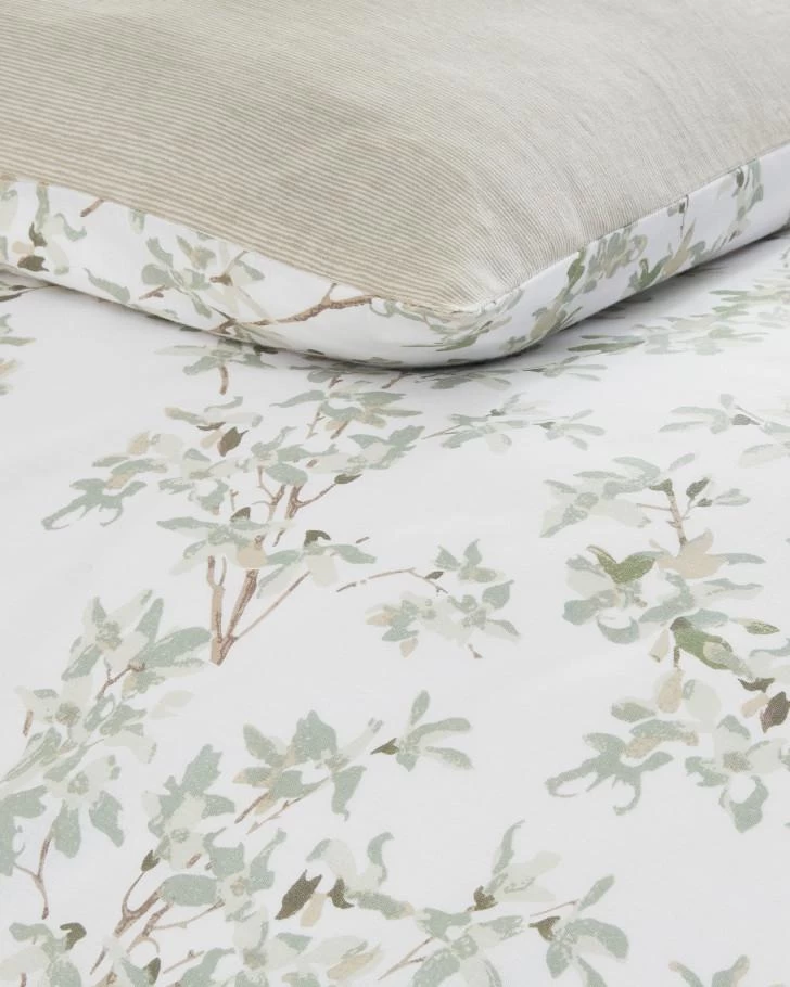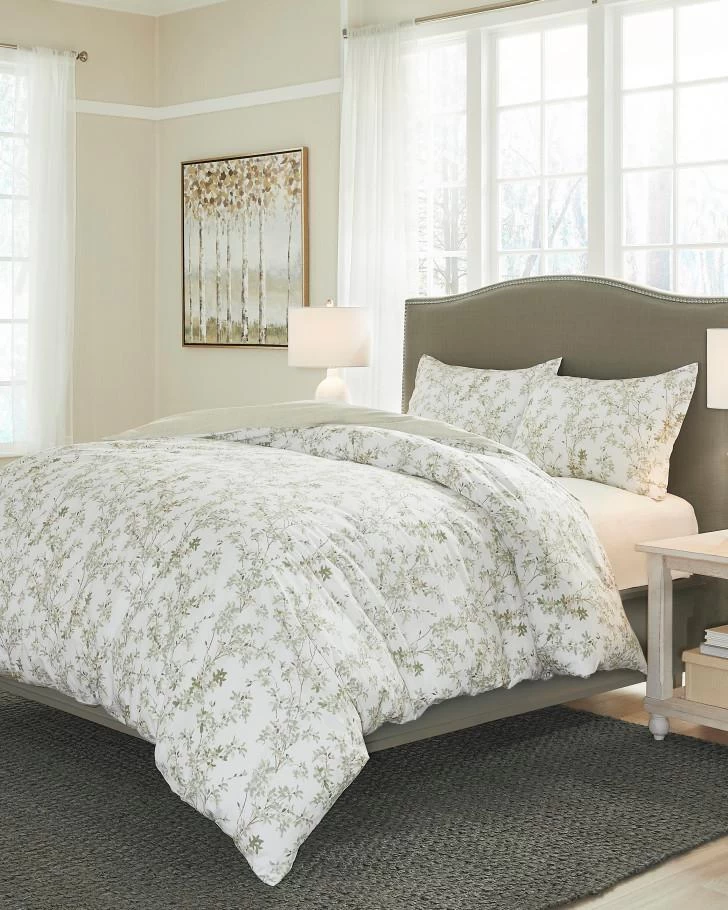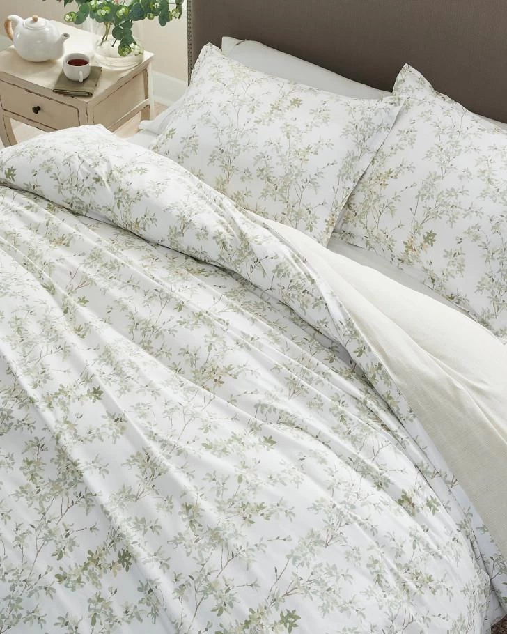 No matter the season, you can always wake up to spring with this delicate design of leafy branches. Hues of spa green, beige and white is a classic pairing that will transform your bedroom into a relaxing retreat and reverses to a neutral beige stripe. Made of 100% cotton, a duvet cover is a great choice to update your bedroom each season, and is easy to wash and store. Set is machine washable for easy care.