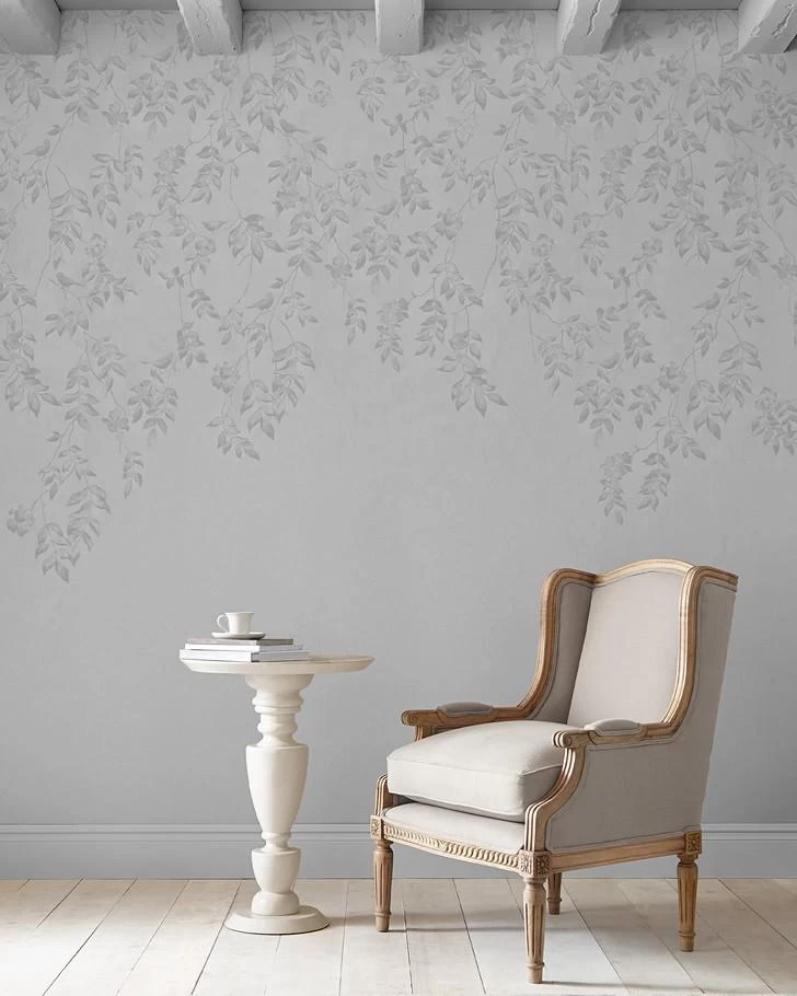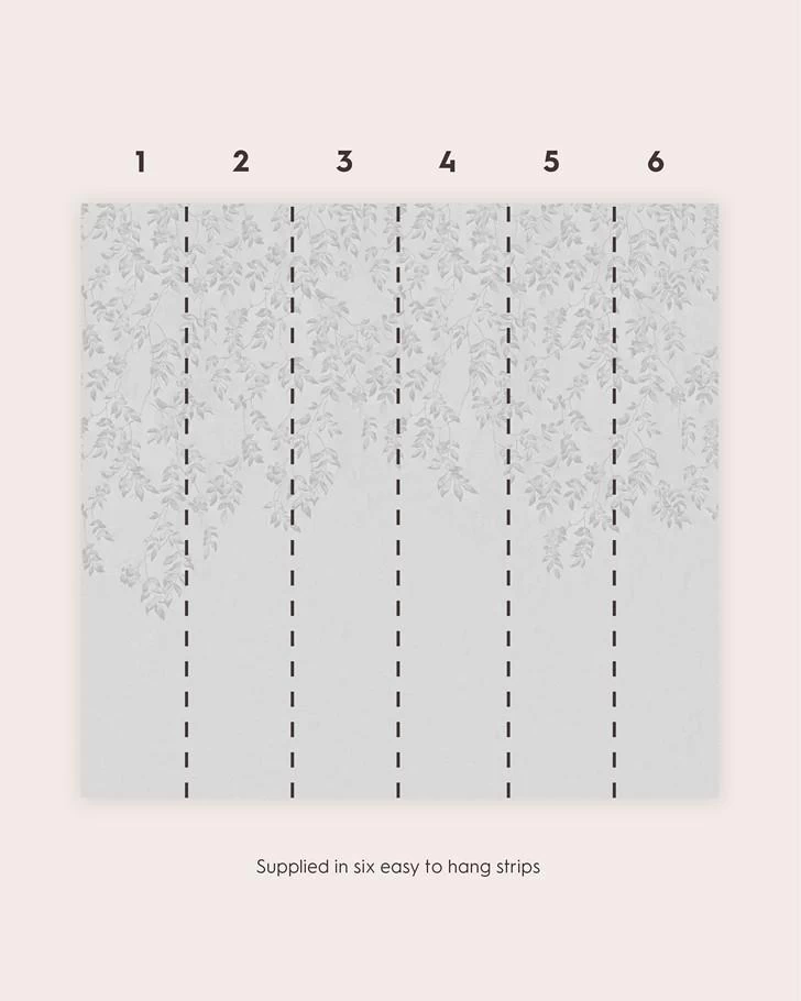 Trailing leaf stems are intertwined with delicate flowers to create this eye-catching mural design. Inspired by a Laura Ashley printed wallpaper from the archive, the hand-painted feel of the artwork brings an authentic and natural look to any room. Our murals come on one roll with 6 referenced panels.