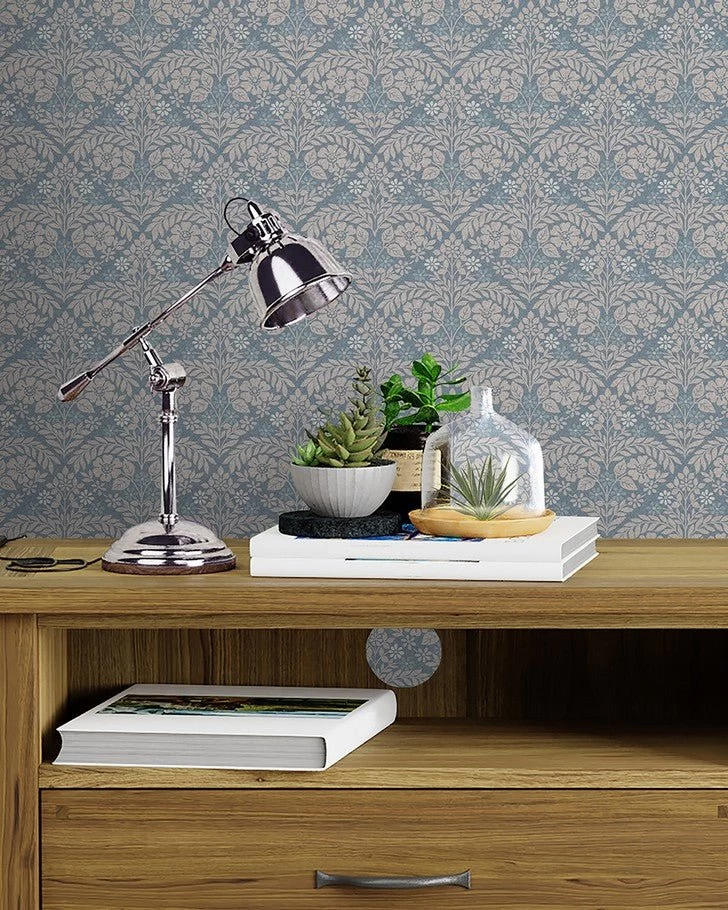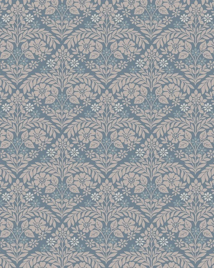Margam is a simple yet striking print that’s perfect for a number of rooms in your home. This classical design with a modern twist is contemporary and fresh in the newport blue colorway. The repeating geometric pattern features lively plants for a true country charm feel.